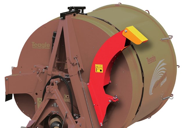 Netting or wrap is easily removed at a safe working height. Adjustment of the drum angle with the optional hydraulic top link makes the operation even easier. |